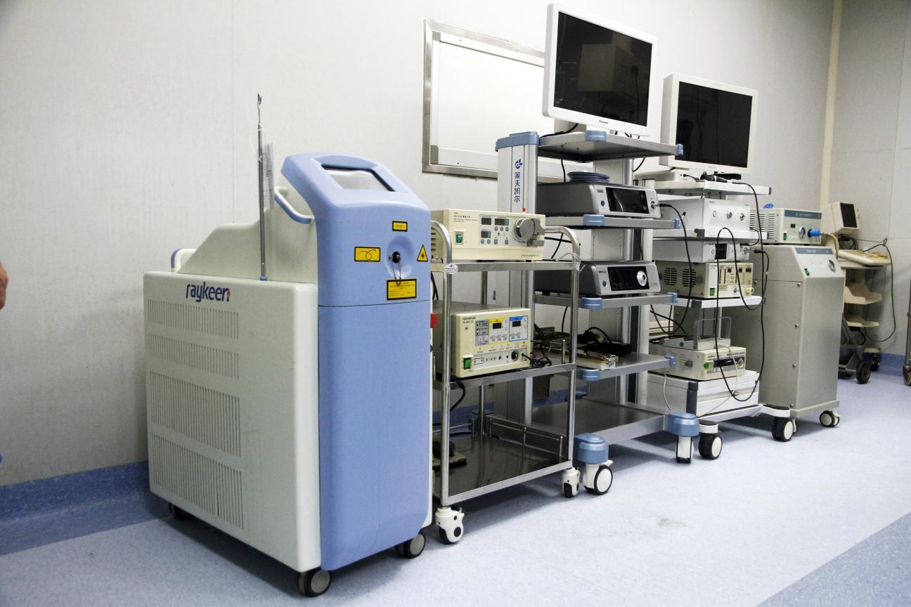 手麻科有層流手術(shù)室6間,麻醉恢復(fù)室1間,每間手術(shù)室均配備了先進(jìn)的監(jiān)測、搶救設(shè)備,麻醉機及麻醉藥品,搶救藥品保管完好,隨時待用,骨科手術(shù)間有日本進(jìn)口的C型臂骨動力系統(tǒng)(下圖左),前列腺手術(shù)間配有先進(jìn)的雙波長激光機,彈道碎石機,鈥激光碎石機(下圖中)。腔鏡手術(shù)室有3套進(jìn)口電視腹腔鏡,麻醉恢復(fù)室配備呼吸機(下圖右),常規(guī)生命體征監(jiān)測系統(tǒng),搶救藥品等。