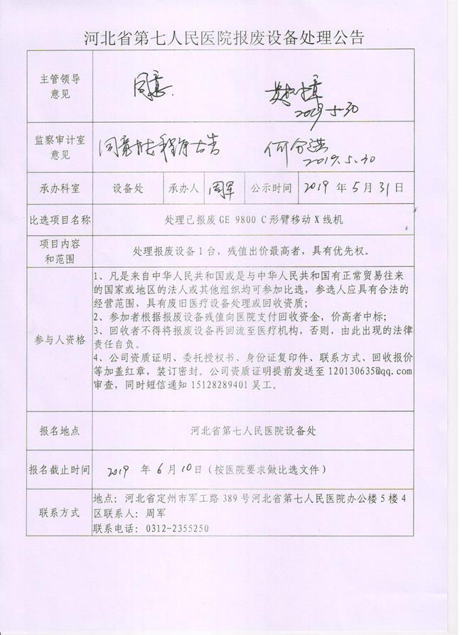 > 醫(yī)院動(dòng)態(tài) > 處理已報(bào)廢GE9800C形臂移動(dòng)X線機(jī)公告處理已報(bào)廢GE9800C形臂移動(dòng)X線機(jī)公告