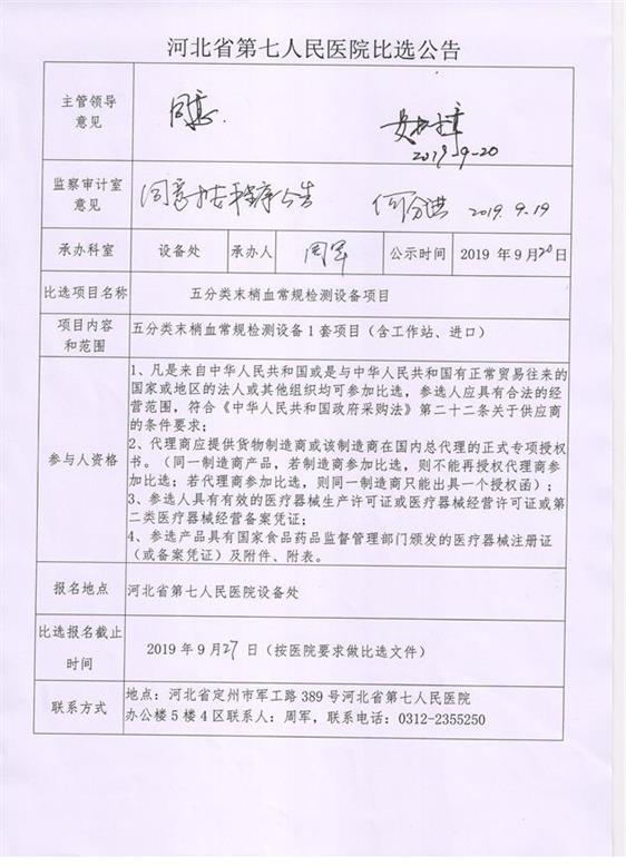 > 醫(yī)院動(dòng)態(tài) > 五分類末梢血常規(guī)檢測(cè)設(shè)備比選公告五分類末梢血常規(guī)檢測(cè)設(shè)備比選公告