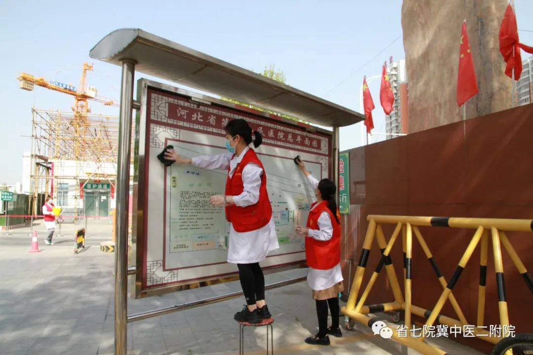 宣傳處馮淑珍處長帶領(lǐng)一波小美女們在擦拭院內(nèi)的休閑椅、宣傳欄;