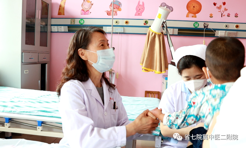 周六的省七院兒科推拿室里,我院外聘專家史瑞芳正在為孩子推拿治療。每次給患兒治療前,史老師總是習(xí)慣性地喊一聲“乖寶寶”,然后再笑瞇瞇地摸摸孩子的小臉蛋,揉揉肚子、搓搓背,再逗逗小朋友。一套動作就把小朋友的臉色看了,舌苔診了,手指腕脈也觸了。