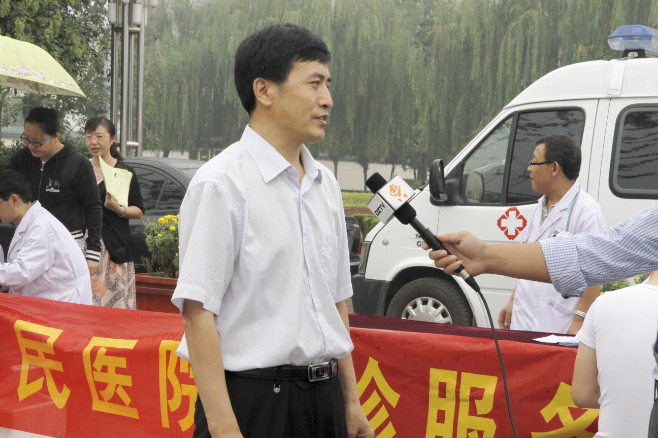 秋雨擋不住醫(yī)生義診的腳步,寒風(fēng)擋不住患者就診的熱情,9月14日,省七院在張寒暉廣場(chǎng)舉辦年度大型義診活動(dòng),任志學(xué)副院長(zhǎng)接受電視臺(tái)專訪。