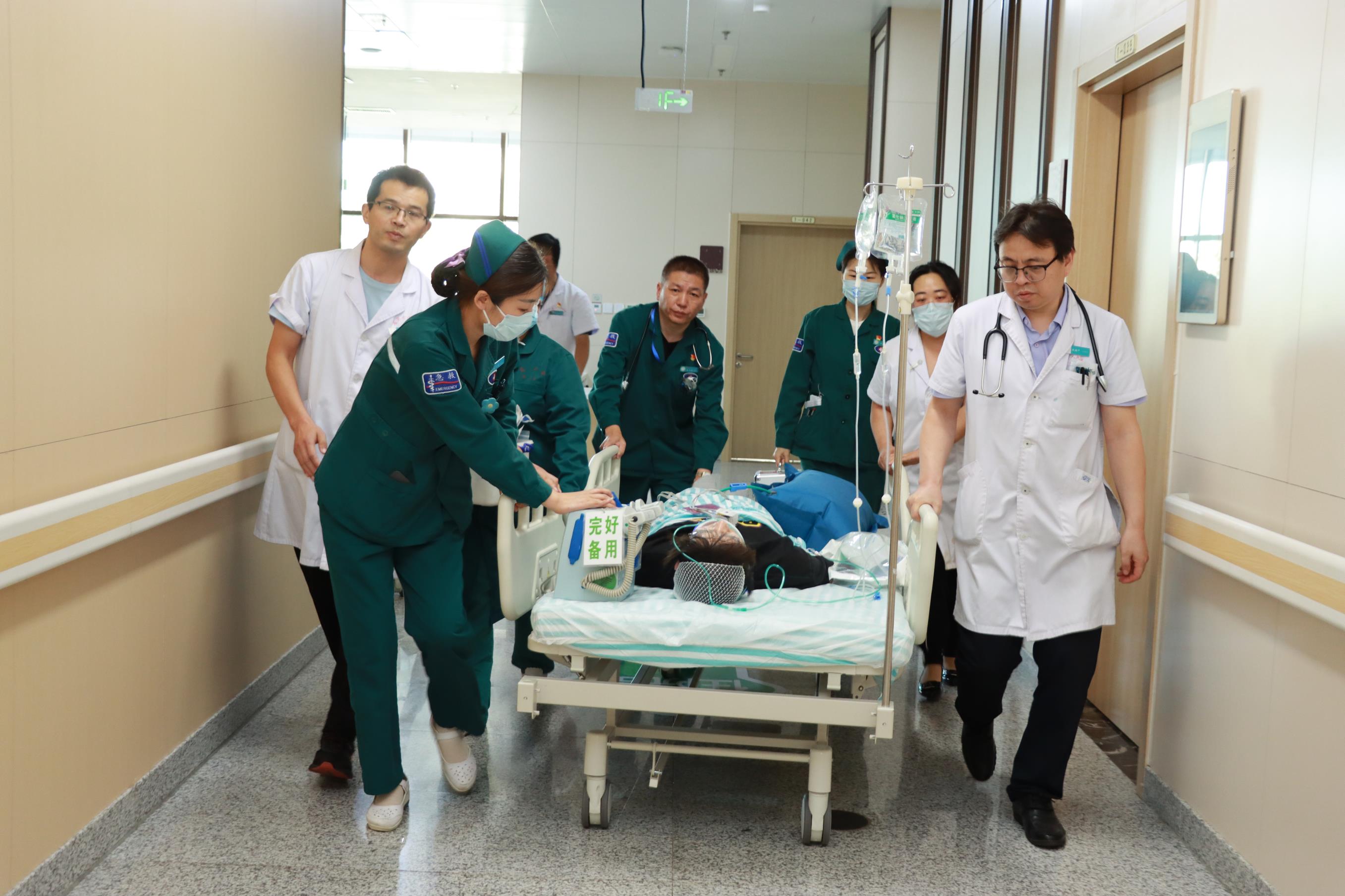 創(chuàng)傷中心接收到信息后,第一時(shí)間準(zhǔn)備相應(yīng)救治物資并通知骨傷科、神經(jīng)外科、綜合外科、麻醉科及超聲、放射、心電圖等輔助科室組成的多學(xué)科創(chuàng)傷救治小組立即集結(jié);颊叩竭_(dá)后,創(chuàng)傷救治小組醫(yī)護(hù)人員快速評(píng)估病情、迅速對(duì)其展開(kāi)針對(duì)性的救治工作。由于患者是三無(wú)(不知姓名,無(wú)家屬,無(wú)治療經(jīng)費(fèi))人員,醫(yī)院根據(jù)急危重癥搶救綠色通道制度,對(duì)其開(kāi)通先救治(包括手術(shù)),后交費(fèi),相關(guān)的醫(yī)療手續(xù)后補(bǔ)辦的急診綠色通道。在患者救治過(guò)程中,院前急救——院內(nèi)創(chuàng)傷救治團(tuán)隊(duì)緊密配合,無(wú)縫銜接,進(jìn)行了檢傷分類(lèi)、嚴(yán)重多發(fā)創(chuàng)傷患者的初高級(jí)生命支持、加壓包扎止血、骨盆帶固定、安全搬運(yùn)、eFAST(超聲快速評(píng)估法)創(chuàng)傷彩超、急診影像、緊急輸血等演練程序,整個(gè)演練過(guò)程緊張有序,醫(yī)護(hù)人員職責(zé)明確,配合默契,各環(huán)節(jié)緊密相連,展現(xiàn)了出色的專(zhuān)業(yè)素養(yǎng)和團(tuán)隊(duì)協(xié)作能力。