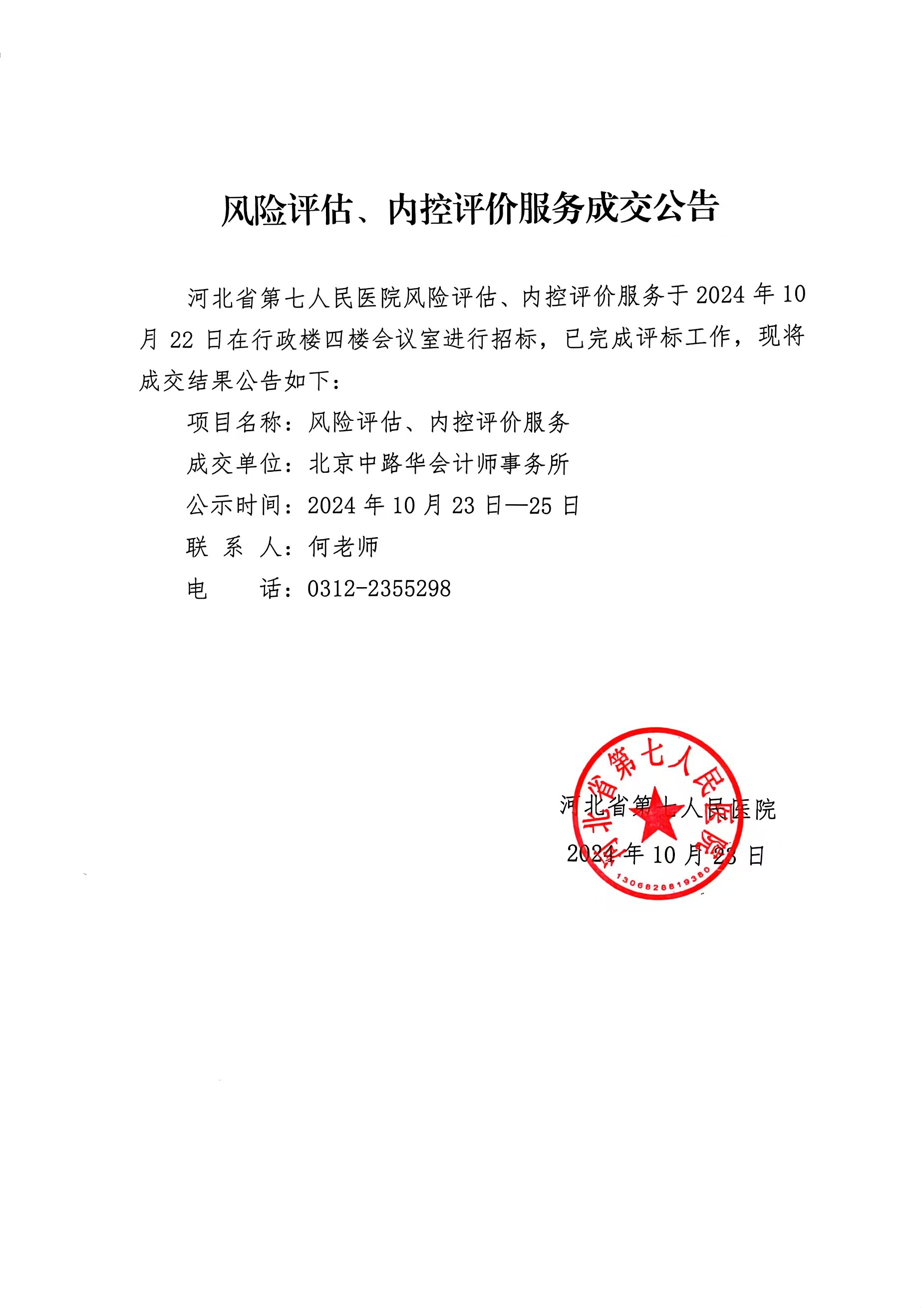 > 醫(yī)院動態(tài) > 風(fēng)險評估、內(nèi)控評價服務(wù)成交公告風(fēng)險評估、內(nèi)控評價服務(wù)成交公告