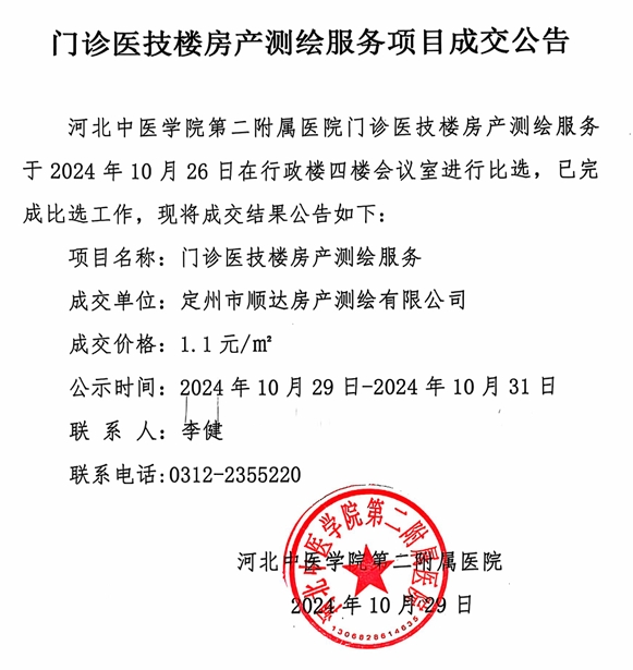 > 醫(yī)院動態(tài) > 門診醫(yī)技樓房產(chǎn)測繪服務項目成交公告門診醫(yī)技樓房產(chǎn)測繪服務項目成交公告