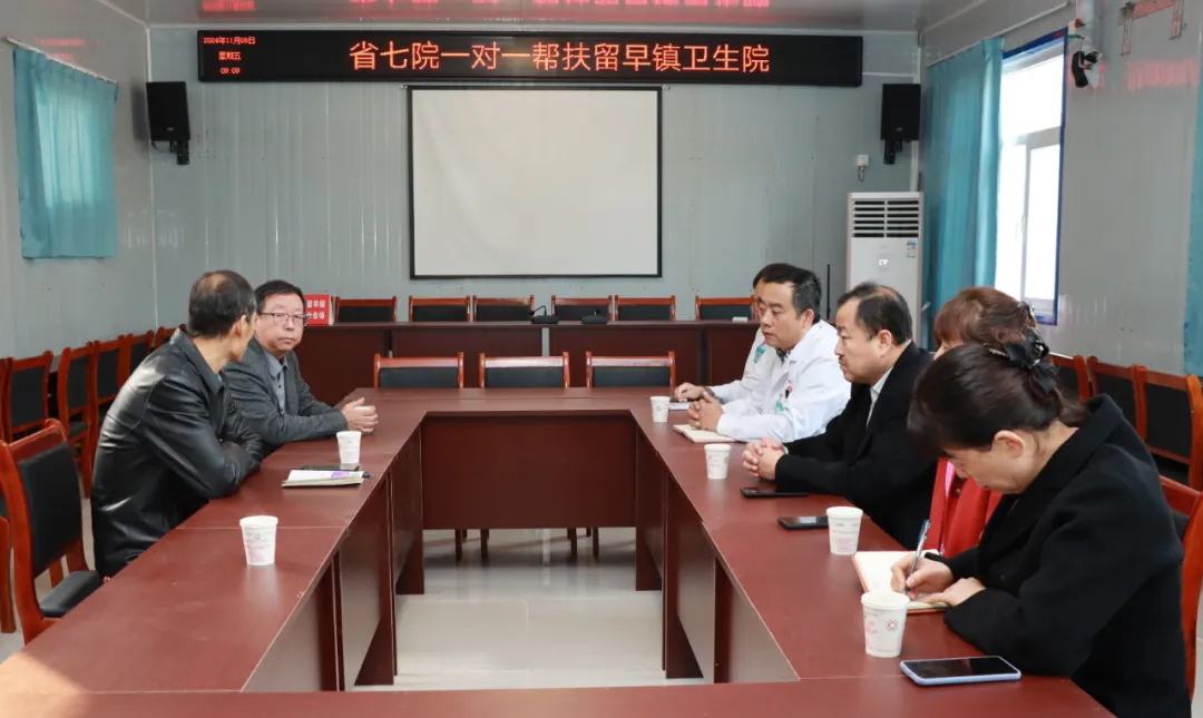 11月8日上午,根據(jù)定州市衛(wèi)健局統(tǒng)一部署,市衛(wèi)健局副局長賈瑞峰與省七院黨委書記楊永利一行7人赴留早鎮(zhèn)衛(wèi)生院就“一對一幫扶”工作調(diào)研。.jpg)