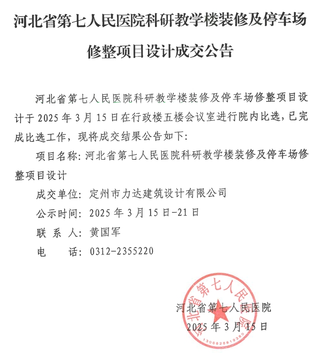 > 醫(yī)院動態(tài) > 科研教學樓裝修及停車場修整項目設計成交公告科研教學樓裝修及停車場修整項目設計成交公告