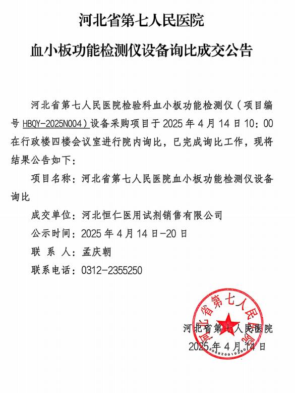 > 醫(yī)院動態(tài) > 血小板功能檢測儀設(shè)備詢比成交公告血小板功能檢測儀設(shè)備詢比成交公告