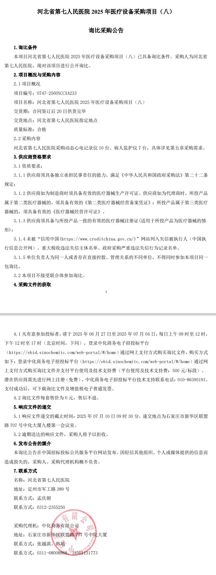 > 醫(yī)院動態(tài) > 2025年醫(yī)療設(shè)備采購項目(八)詢比采購公告2025年醫(yī)療設(shè)備采購項目(八)詢比采購公告