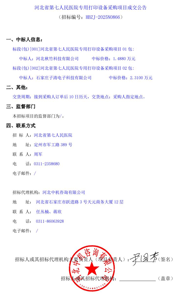 > 醫(yī)院動態(tài) > 專用打印設(shè)備采購項目成交公告專用打印設(shè)備采購項目成交公告