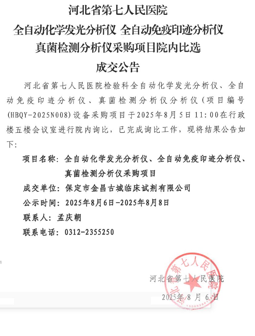 > 醫(yī)院動(dòng)態(tài) > 全自動(dòng)化學(xué)發(fā)光分析儀、全自動(dòng)免疫印跡分析儀、真菌檢測(cè)分析儀采購(gòu)項(xiàng)目院內(nèi)比選成交公告全自動(dòng)化學(xué)發(fā)光分析儀、全自動(dòng)免疫印跡分析儀、真菌檢測(cè)分析儀采購(gòu)項(xiàng)目院內(nèi)比選成交公告