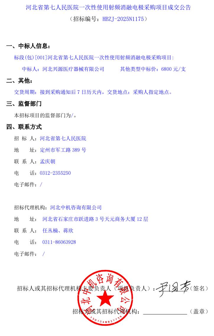 > 醫(yī)院動態(tài) > 一次性使用射頻消融電極采購項目成交公告一次性使用射頻消融電極采購項目成交公告