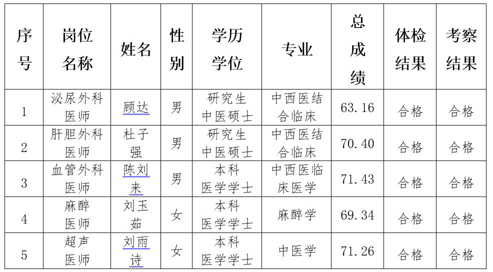 根據(jù)《河北省第七人民醫(yī)院2025年公開招聘工作人員公告》(非在編第二批),經(jīng)資格審查、考試、面試、體檢、考察等程序,擬聘用以下5人為工作人員,現(xiàn)予以公示:.jpg)