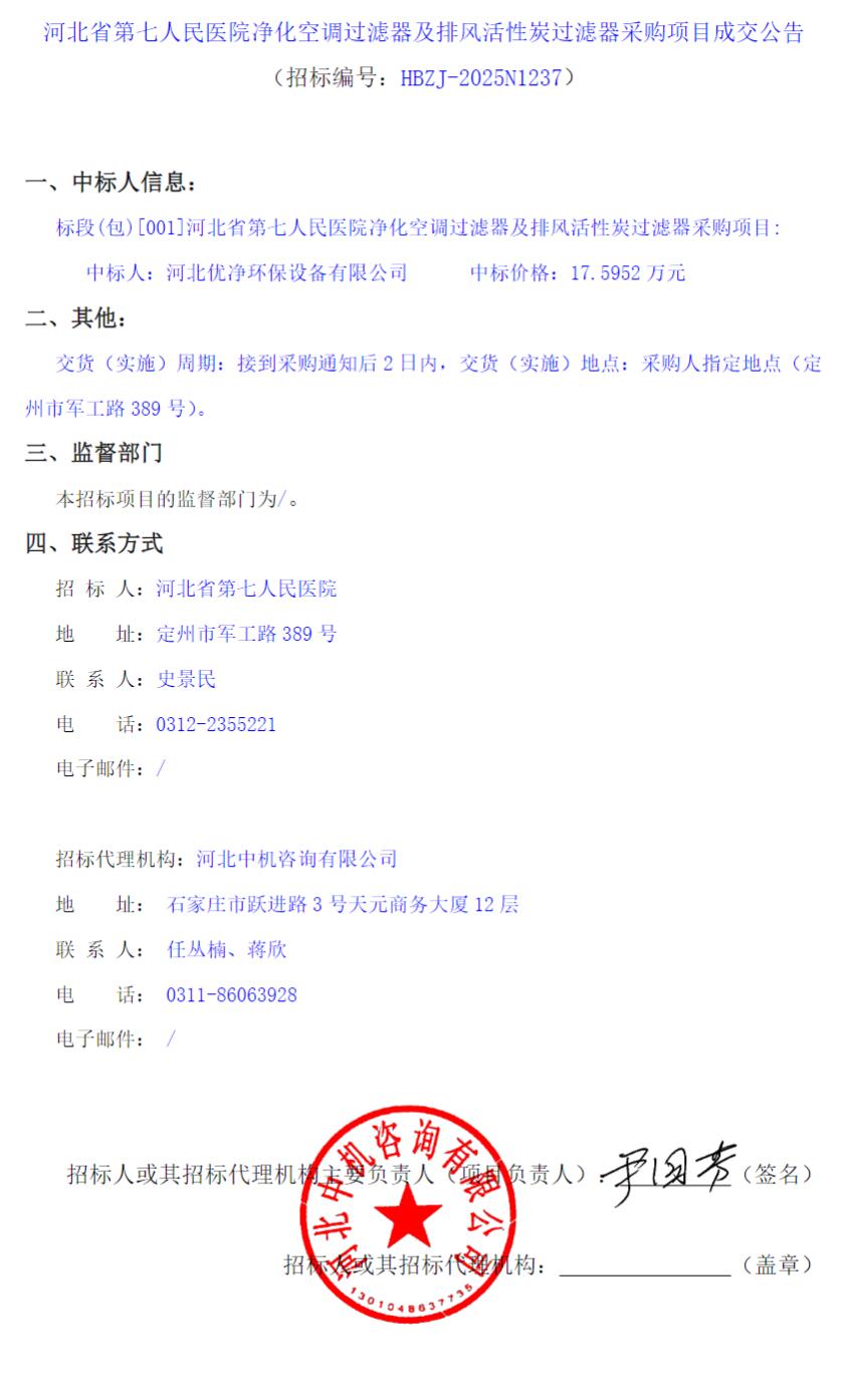 > 醫(yī)院動態(tài) > 凈化空調(diào)過濾器及排風(fēng)活性炭過濾器采購項(xiàng)目成交公告凈化空調(diào)過濾器及排風(fēng)活性炭過濾器采購項(xiàng)目成交公告