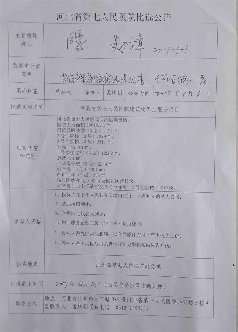 > 醫(yī)院動態(tài) > 河北省第七人民醫(yī)院建筑物保潔服務項目比選公告河北省第七人民醫(yī)院建筑物保潔服務項目比選公告