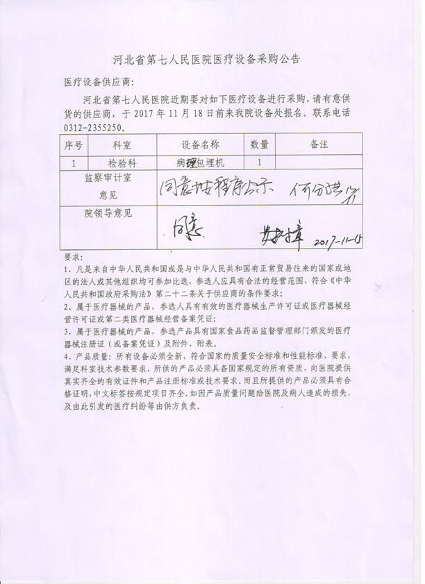 > 醫(yī)院動態(tài) > 河北省第七人民醫(yī)院醫(yī)療設(shè)備采購公告河北省第七人民醫(yī)院醫(yī)療設(shè)備采購公告