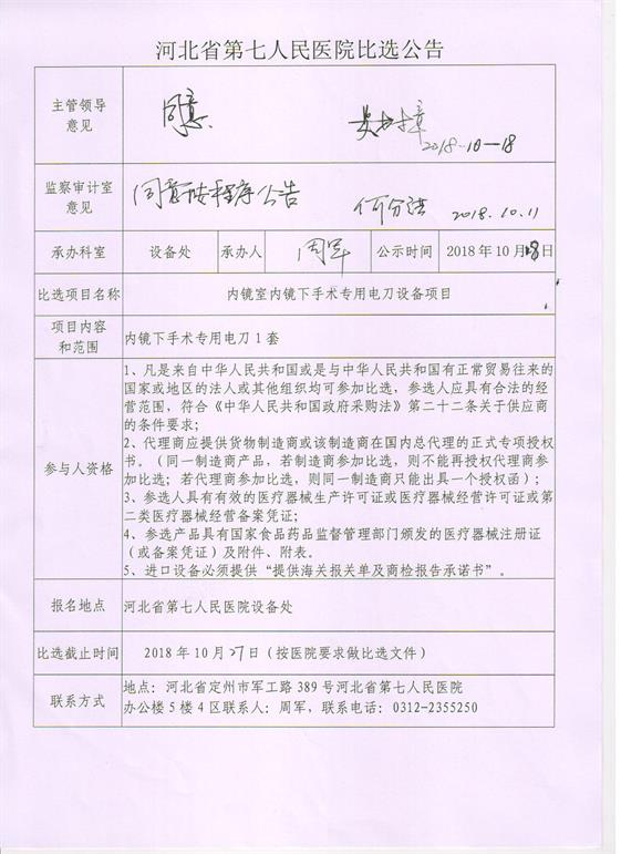 > 醫(yī)院動態(tài) > 內(nèi)鏡室內(nèi)鏡下手術(shù)專用電刀設(shè)備項目比選公告內(nèi)鏡室內(nèi)鏡下手術(shù)專用電刀設(shè)備項目比選公告